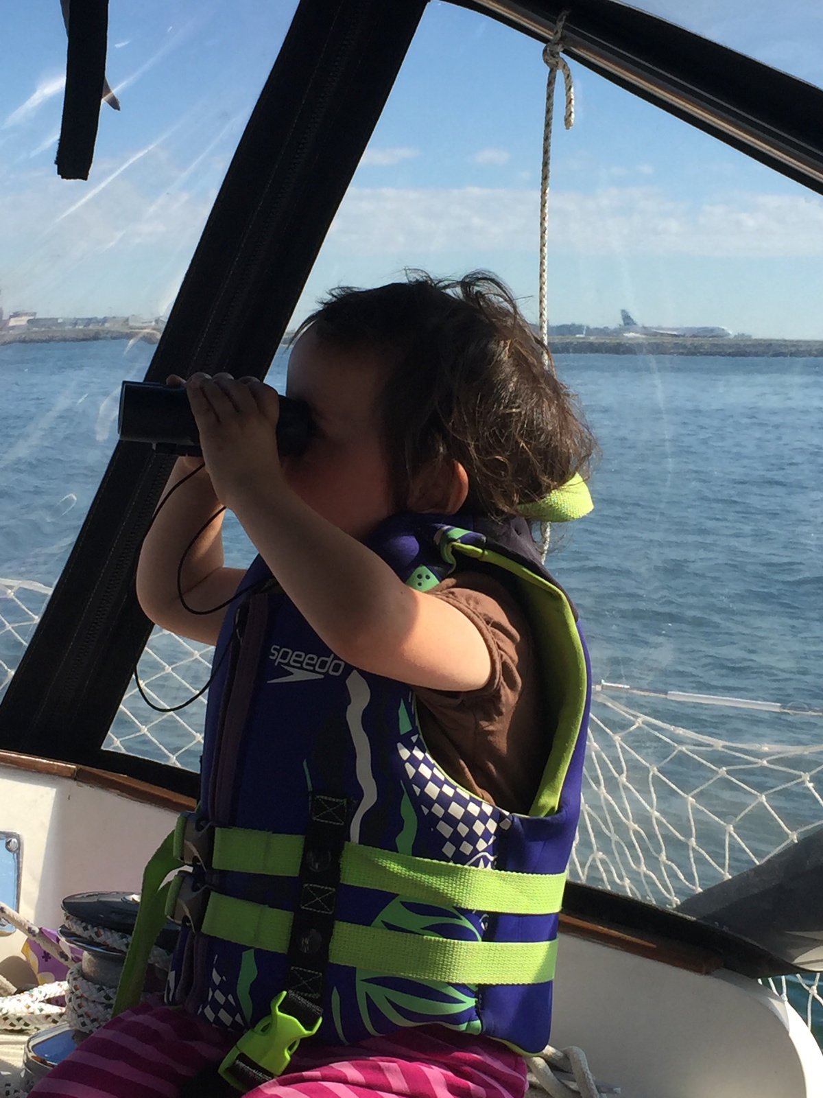 Zoe and Kinsley continue to be easygoing about boat movement. Zoe brought up her spyglass and Kins insisted on binoculars. I’m not sure if either one can see much through them but they had a great time. They chatted happily about all the sights they can identify in the harbor and about the ships going by. They are both very go with the flow which surprises me over and over, I’m so grateful for that.